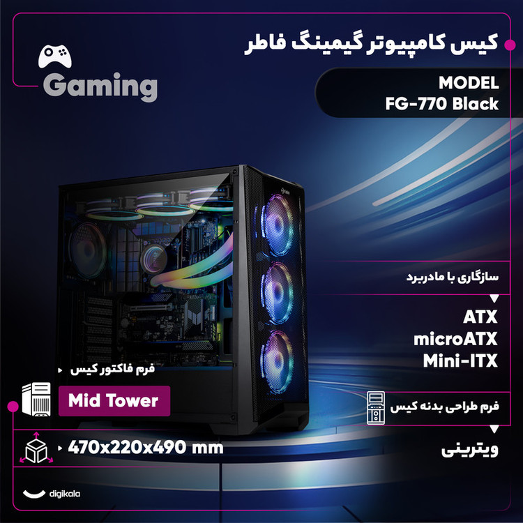 کیس کامپیوتر گیمینگ فاطر مدل FG-770 Black
