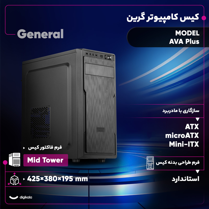 در کیس آوا پلاس گرین که نمونه بهینه سازی شده نسخه قبلی محسوب میشود سعی شده تا با افزایش استقامت بدنه، اصلاح و بهینه سازی جایگاه های نصب تجهیزات ذخیره سازی و همچنین ارتقاء قابلیت های کولینگ، شاهد نمونه ای با کیفیت و کارایی به مراتب بیشتری نسبت به نسخه قبلی باشیم. مدل AVA Plus مناسب آن دسته از کاربرانی است که در نظر دارند با حداقل هزینه ممکن صاحب یک کیس استاندارد با فضای داخلی مناسب و با کمترین محدودیت در پشتیبانی از سخت افزارهای مدرن کنونی شوند.