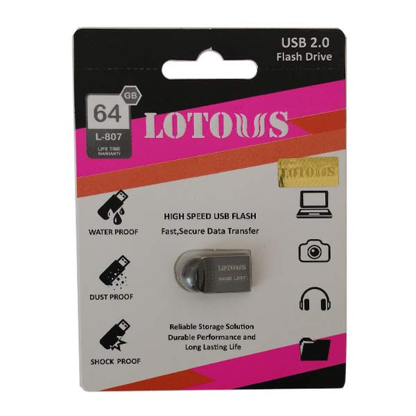 فلش مموری 64G لوتوس مدل L-807 در برابر آب ، ضربه و شک و گرد و غبار مقاوم بوده و دارای پورت USB2.0 می باشد. این فلش مموری با ظرفیت 64 گیگا بایت و کیفیت ساخت عالی، گزینه بسیار مناسبی برای به همراه داشتن اطلاعات مورد نیاز شما است.